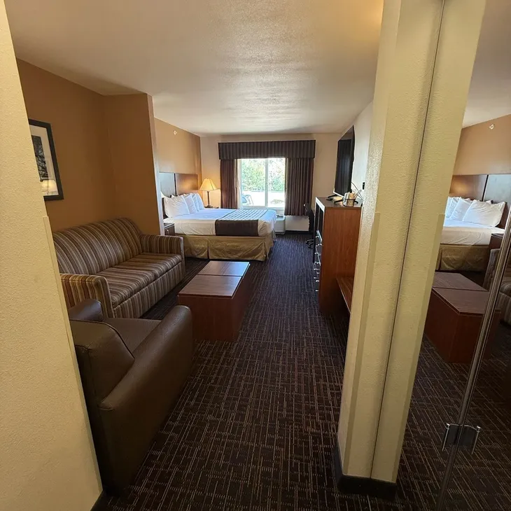 Richland Inn and Suites in Sidney offers family rooms with air-conditioning, private bathrooms, and free WiFi throughout the property. Each room includes a coffee machine, refrigerator, TV, and wardrobe. Guests can enjoy a fitness center, minimarket, housekeeping, business area, and full-day security. Free on-site parking is available. Sidney-Richland Municipal Airport is 1.2 mi away. Nearby attractions include the Sidney Museum and the Sidney Public Library. Couples in particular like the location – they rated it 9.1 for a two-person trip.