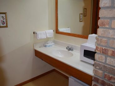High speed Wi-Fi internet is provided in each guest room, lobby and swimming pool area. Most of our rooms are equipped with microwave, refrigerator and hair dryer and we provide all rooms with cable TV, free local calls, and wakeup call service. Upon guest request we provide irons and ironing boards. Pet friendly rooms are available for a nominal charge (dogs only allowed). We have a large parking area for buses and trucks with electrical plug-in outlets. Our guests enjoy a spacious indoor heated pool with music and sauna for relaxation. A 50 person occupancy hall is available for small occasions.