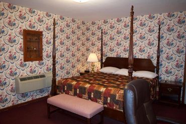 Four Post King Bed. Whirlpool Tub. Air Conditioning. Refrigerator. Coffee/Tea Maker. Hair Dryer. Desk. WIFI. Ironing Board and Iron. LCD TV. No Smoking. Private Bathroom. Radio. Telephone.
