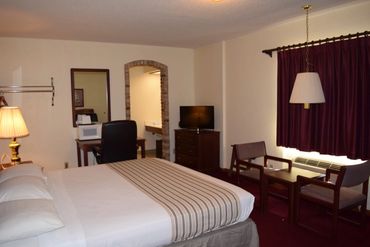 King Bed. Air Conditioning. Refrigerator. Coffee/Tea Maker. Hair Dryer. Desk. WIFI. Ironing Board and Iron. LCD TV. No Smoking. Private Bathroom. Radio. Telephone.