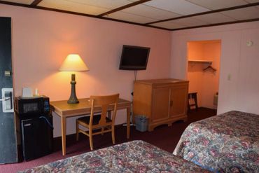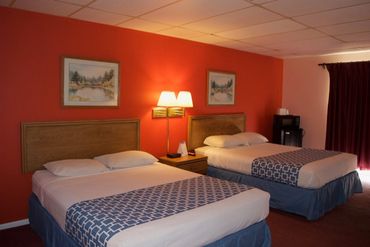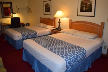 Two Queen Beds. Air Conditioning. Refrigerator. Coffee/Tea Maker. Hair Dryer. Desk. WIFI. Ironing Board and Iron. LCD TV. No Smoking. Private Bathroom. Radio. Telephone.
